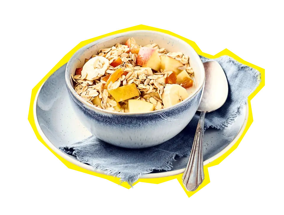Ein leckeres Müsli besteht aus einer ausgewogenen Mischung aus Haferflocken, Nüssen, Samen und Trockenfrüchten. Die Kölln Haferflocken bilden dabei die ideale Basis und sind ballaststoffreich und sättigend. Je nach Rezept werden sie ergänzt mit Zutaten wie Mandeln, Sonnenblumenkernen, Leinsamen oder Trockenfrüchten.