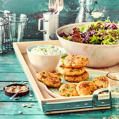 1Mix delicate Kölln flakes and real Kölln kernels, pour vegetable broth over them and let soak for about 30 minutes. Wash and clean the spring onions, cut into rings and sauté in 1 tablespoon of Mazola®. Mix the oatmeal mixture with spring onions, walnuts and herbs and season with the spices. Knead in the Kölln oat bran flakes, form patties and fry on both sides in the remaining Mazola®. Preparation time: approx. 25 minutes (without waiting time)