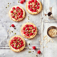 4Sort the raspberries, wash them, drain them well and distribute them on the tartlets. Prepare the cake icing according to the package instructions and carefully pour it over the raspberries. Let it solidify in the fridge.