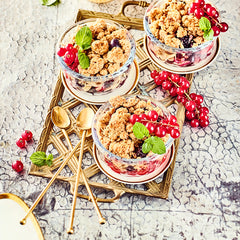 3You can prepare the dessert two to three hours in advance and store it in the refrigerator, covered and unbaked. If you like, you can serve the crumble with vanilla sauce.