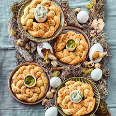 6Ideally, you should enjoy the bread wreath on the same day. Pesto, salted butter or a dip goes well with the Easter wreath.